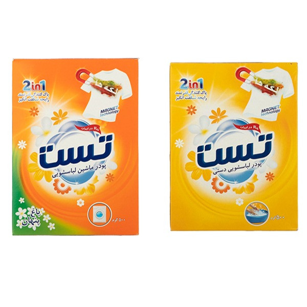 پودر ماشین لباسشویی و پودر دستی تست کد وزن 500 گرم مجموعه 2عددی