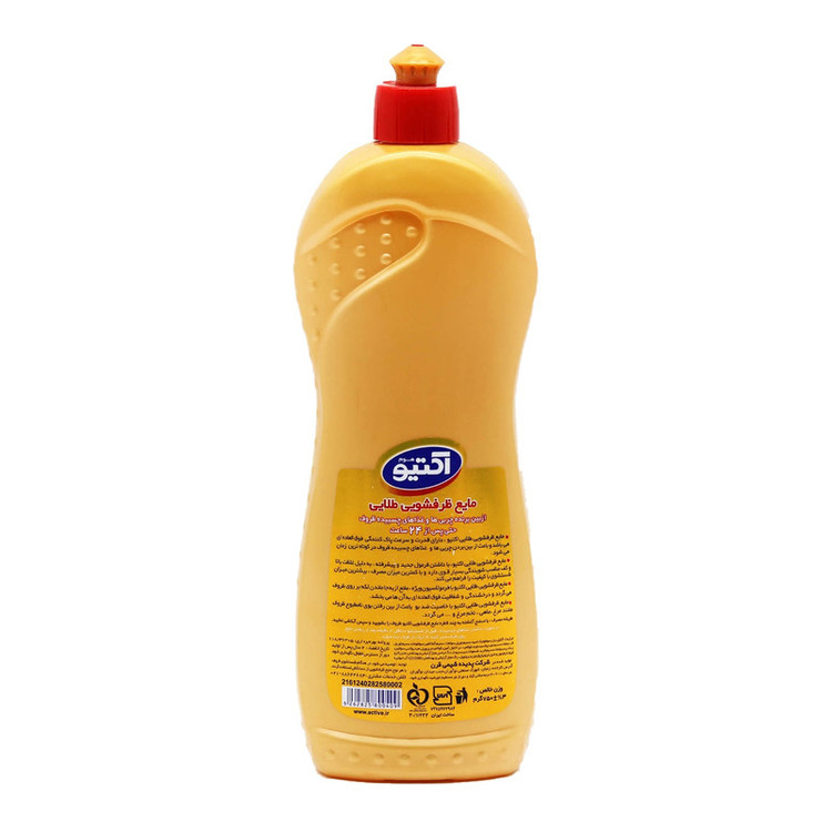 مایع ظرفشویی طلایی 750 گرمی اکتیو با قدرت و سرعت پاککنندگی فوقالعاده باعث از بین رفتن چربیها و غذاهای چسبیده به ظروف، حتی پس از 24 ساعت، میشود. این محصول با داشتن فرمولی پیشرفته، غلظت و کف مناسب، قدرت تمیزکنندگی بالایی دارد و با کمترین میزان مصرف، بیشترین میزان پاکیزگی و درخشندگی را بههمراه دارد و بههیچوجه بر روی ظروف شیشهای و کریستالی لکه و اثری برجای نمیگذارد و درخشندگی و شفافیت فوقالعاده به ظروف میبخشد.