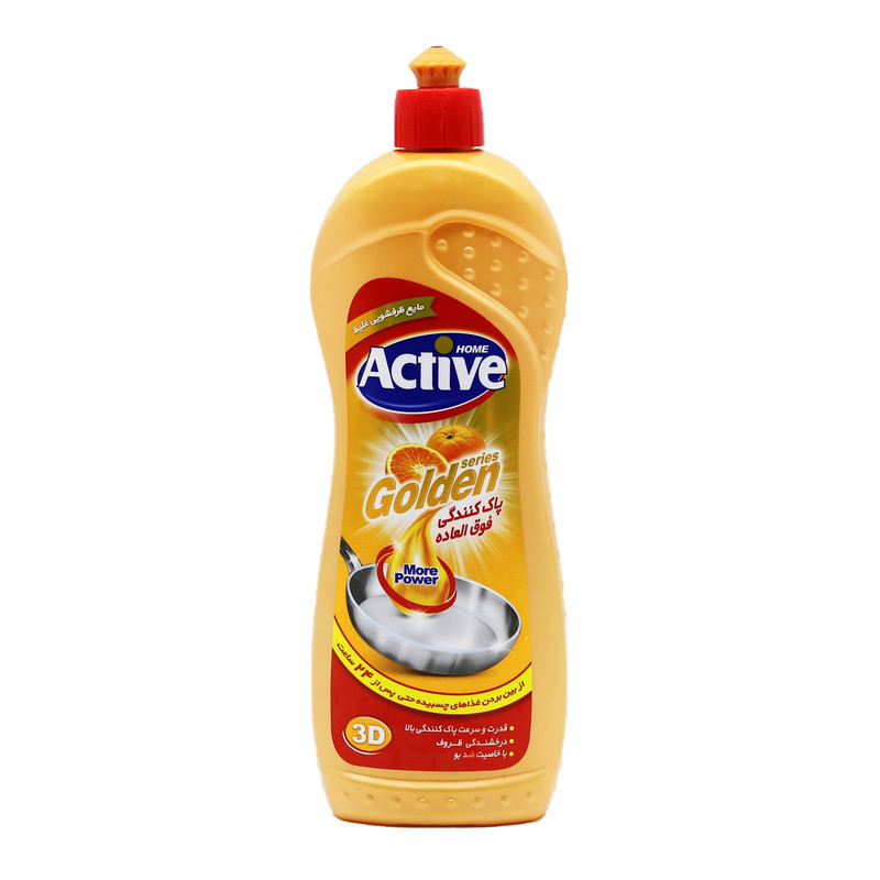 مایع ظرفشویی طلایی 750 گرمی اکتیو با قدرت و سرعت پاککنندگی فوقالعاده باعث از بین رفتن چربیها و غذاهای چسبیده به ظروف، حتی پس از 24 ساعت، میشود. این محصول با داشتن فرمولی پیشرفته، غلظت و کف مناسب، قدرت تمیزکنندگی بالایی دارد و با کمترین میزان مصرف، بیشترین میزان پاکیزگی و درخشندگی را بههمراه دارد و بههیچوجه بر روی ظروف شیشهای و کریستالی لکه و اثری برجای نمیگذارد و درخشندگی و شفافیت فوقالعاده به ظروف میبخشد.