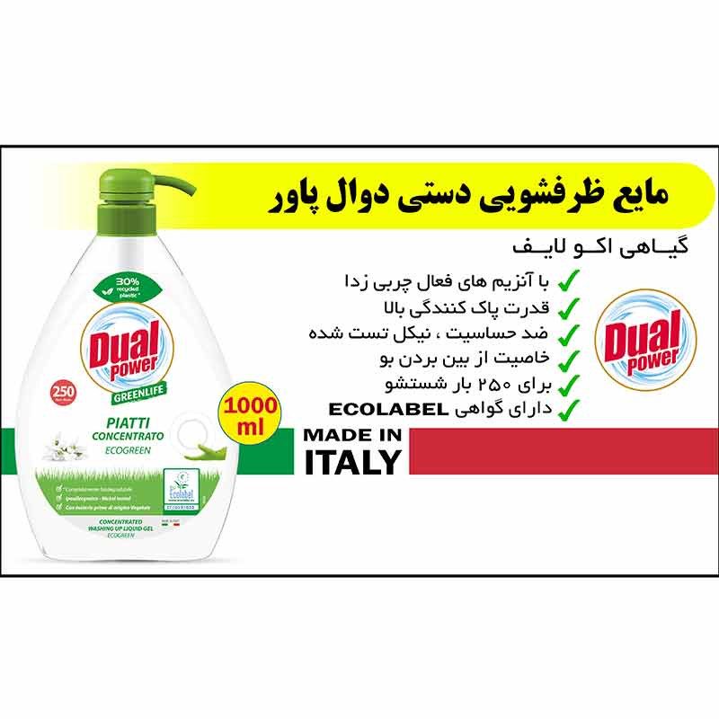 مایع ظرفشویی دوآل پاور مدل گیاهی حجم 1000 میلی لیتر