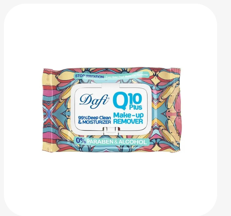 دستمال مرطوب آرایشی دافی مدل Q10 ضد التهاب بسته 50 عددی