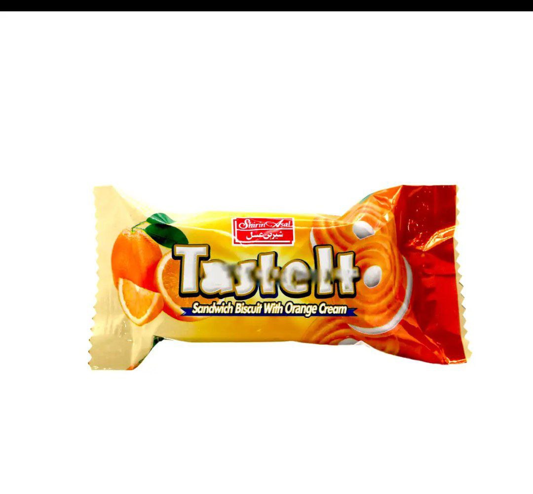 بیسکوئیت کرم دار پرتقالی شیرین عسل 30 گرمی بسته 36 عددی