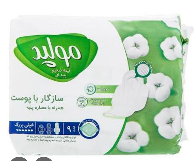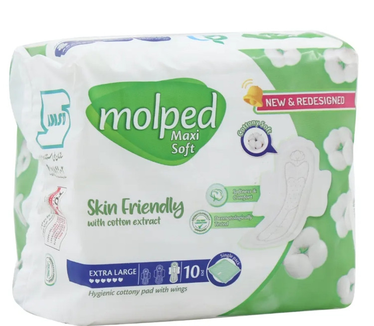 نوار بهداشتی بالدار بزرگ نیمه ضخیم پنبه ای 10 عددی مولپد
