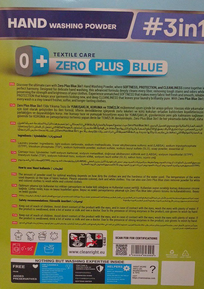 پودر لباسشویی دستی 500 گرمی زیروپلاس